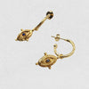 A pair of textured gold-plated 935 sterling silver hoops, each adorned with an ancient-inspired eye charm set with a deep blue stone at its center. Lightweight yet bold, these earrings carry the essence of mystique and strength.